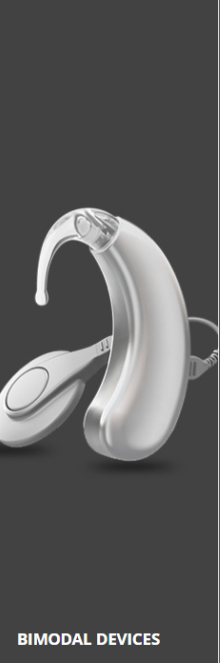 Bimodal is a combination of using a hearing aid with acoustic input on one ear and a cochlear implant and electrical input on the other ear.